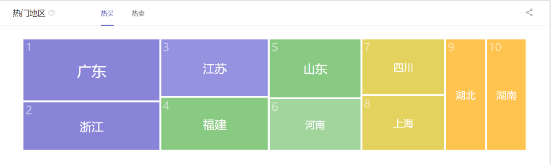 熱買即指類目下購買主要來自該地區,熱賣即指類目下銷售主要來自該地區