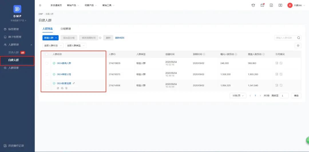 2.進入DMP后我們可以看到它分成很多種不同維度的組合標簽,我們需要創建好不同維度下標簽里面的核心人群。